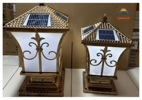 Đèn trụ cổng năng lượng mặt trời hình tháp – thiết kế sang trọng, chống nước, chiếu sáng tự động, tiết kiệm điện, vừa trang trí vừa chiếu sáng hiệu quả cho cổng và sân vườn.
